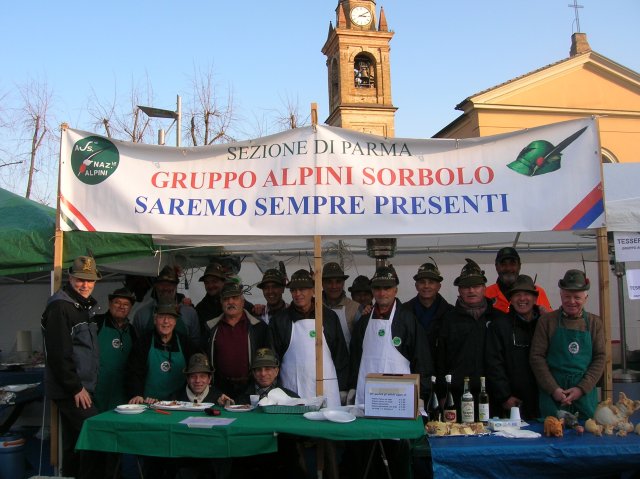 Il Gruppo Alpini di Sorbolo ha partecipato all'iniziativa insieme al Gruppo Alpini di Folgaria con uno stand per la preparazione del vin brulè, polenta e distribuzione di dolci a sorpresa (torte, ecc.) e bevande (caffè, vino, grappe, ecc.).